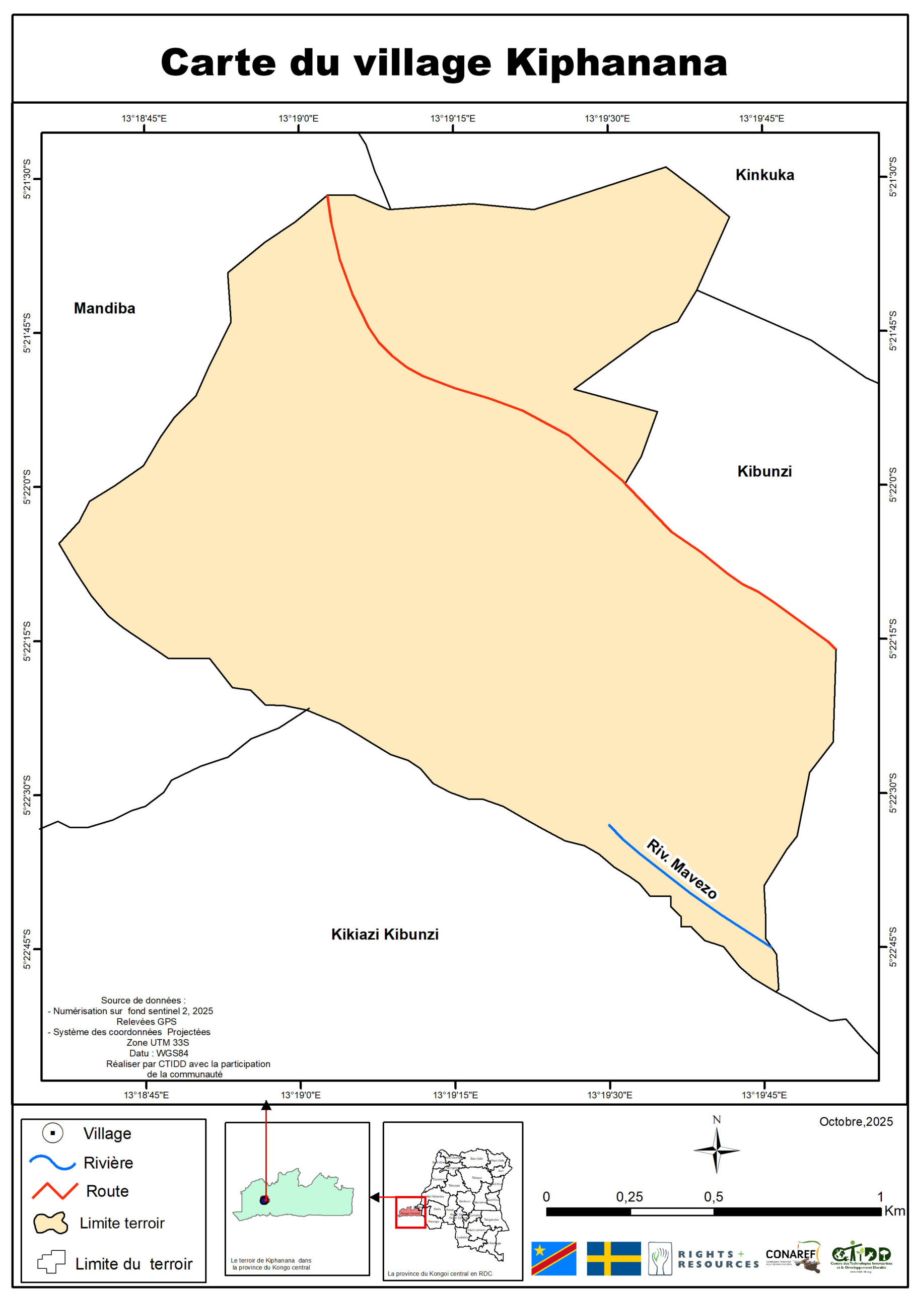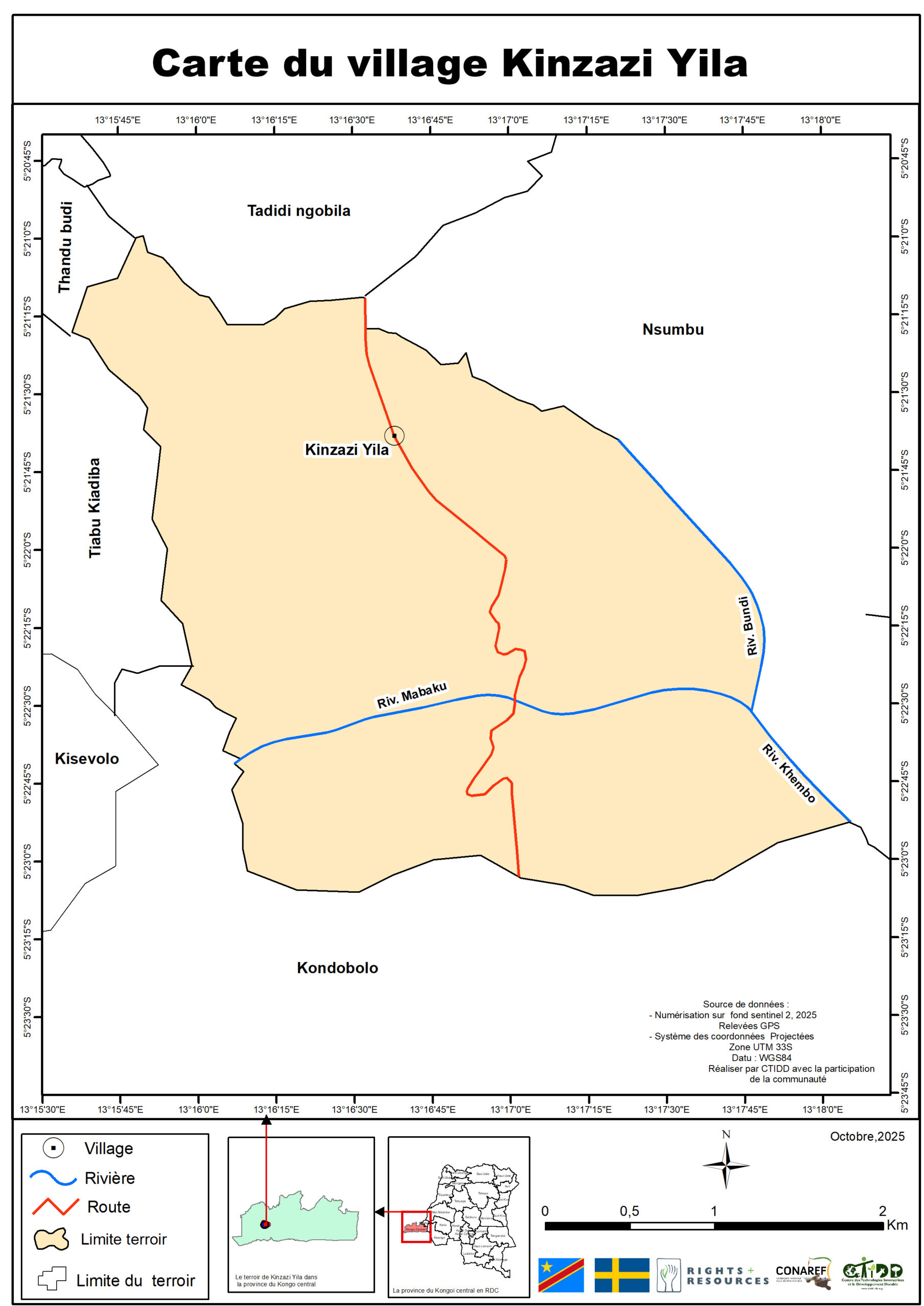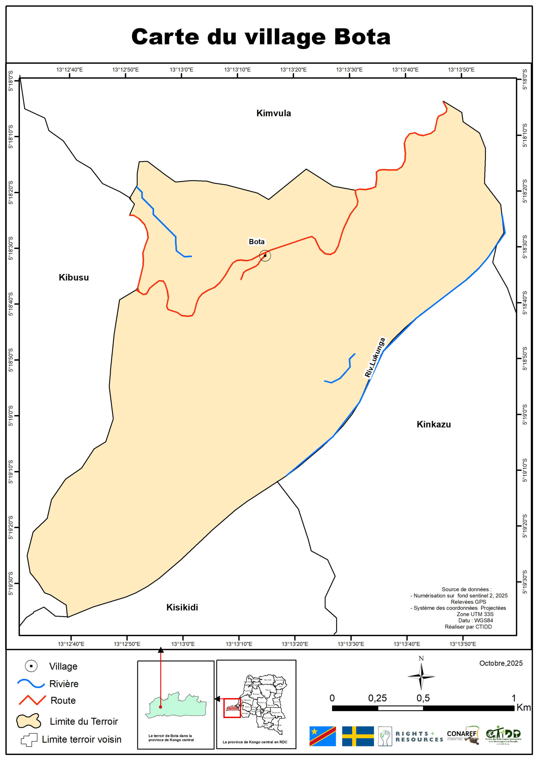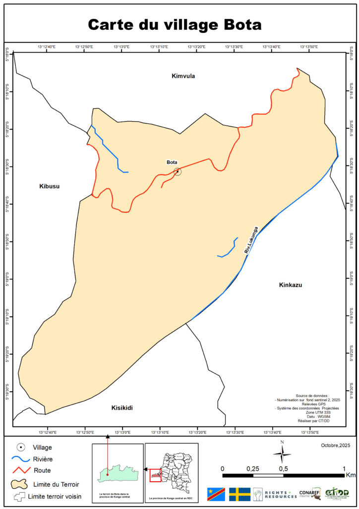 C’est dans ce cadre que le Centre des Technologies Innovatrices et le Développement Durable (CTIDD), en partenariat avec le Ministère des Affaires Foncières, la Coordination Nationale de la Réforme Foncière (CONAREF), et avec le soutien de la Right Resource Initiative (RRI) et de l’Ambassade de Suède en RDC, a mené une mission intensive de cartographie participative dans le secteur de Bundi.