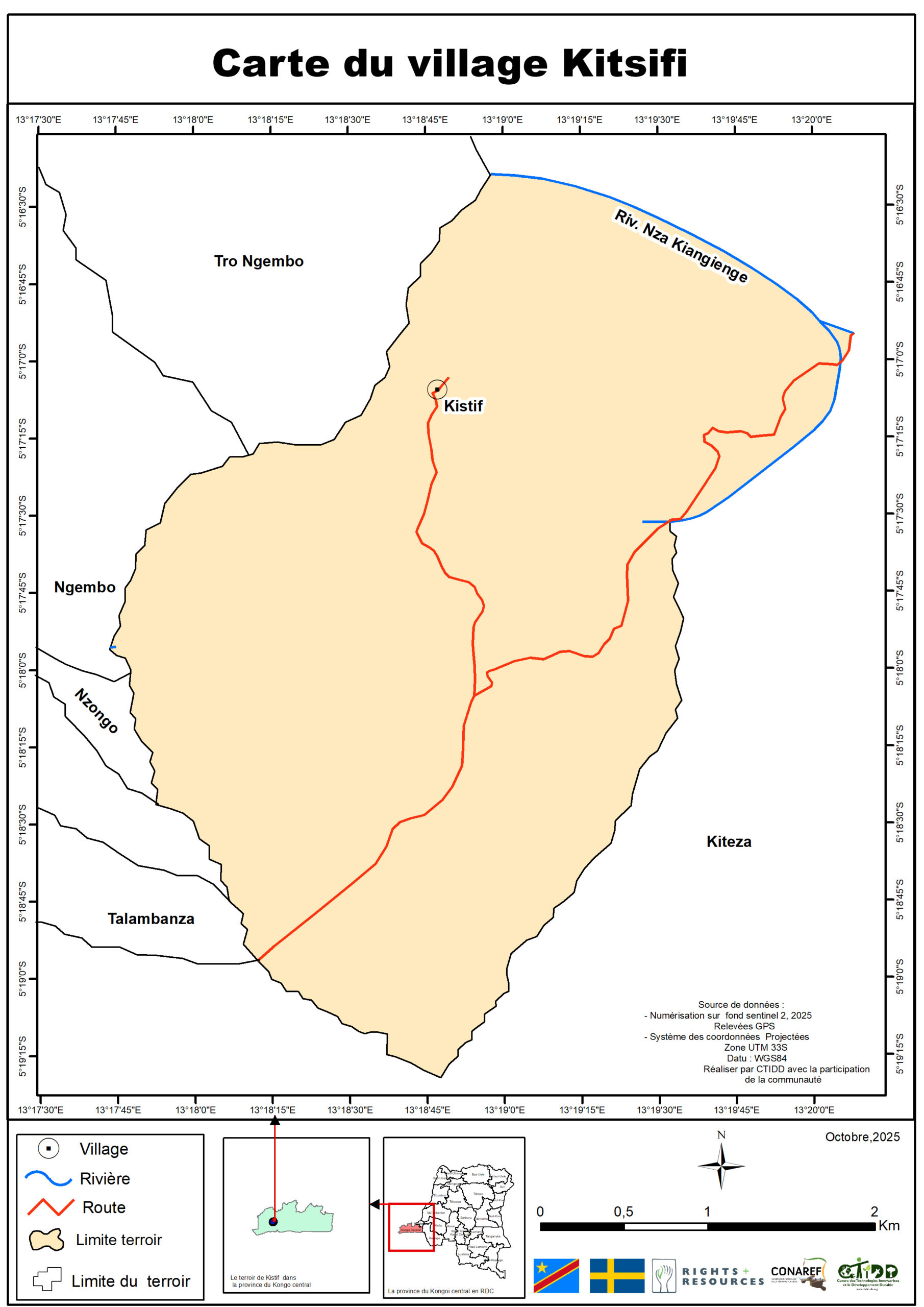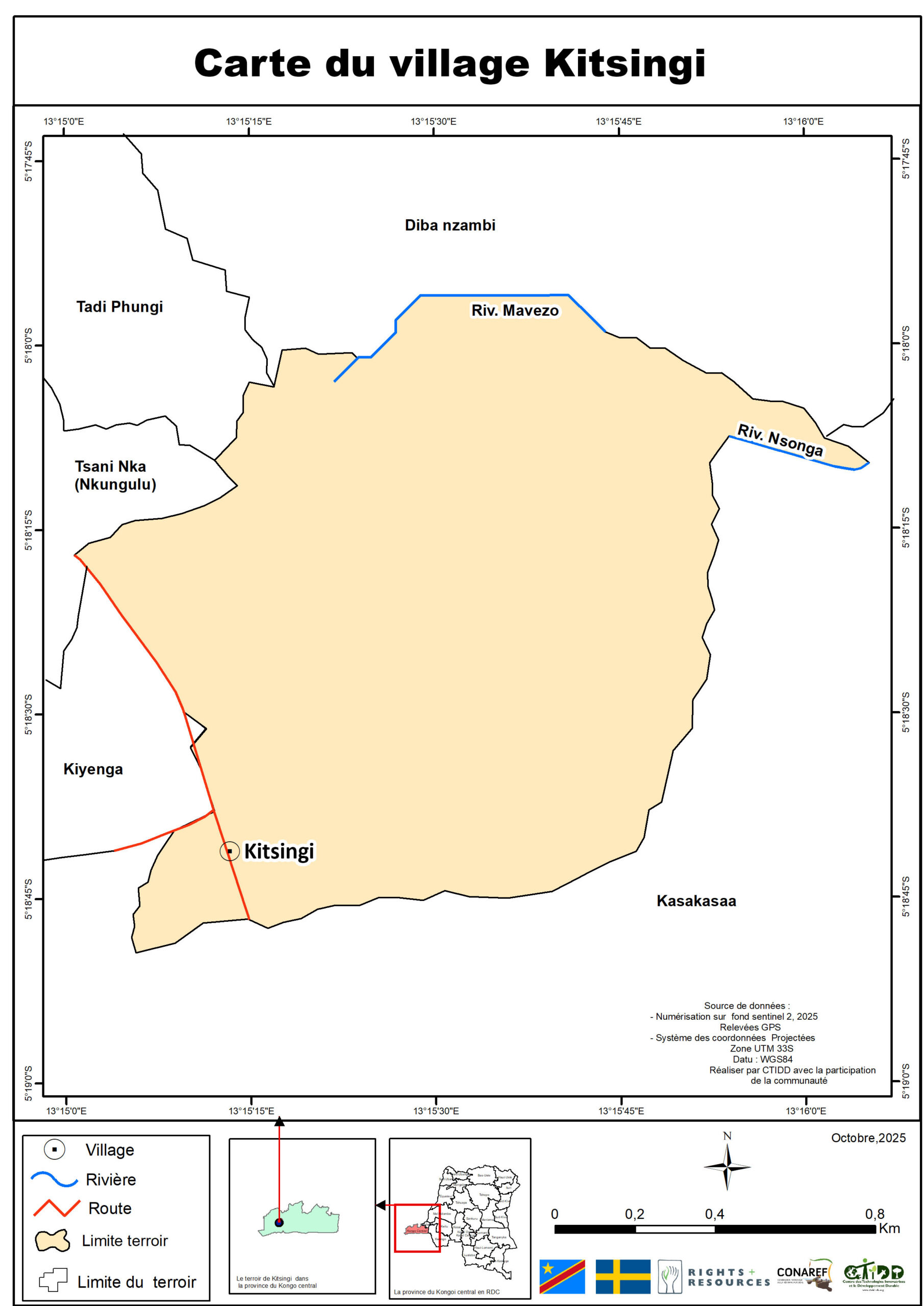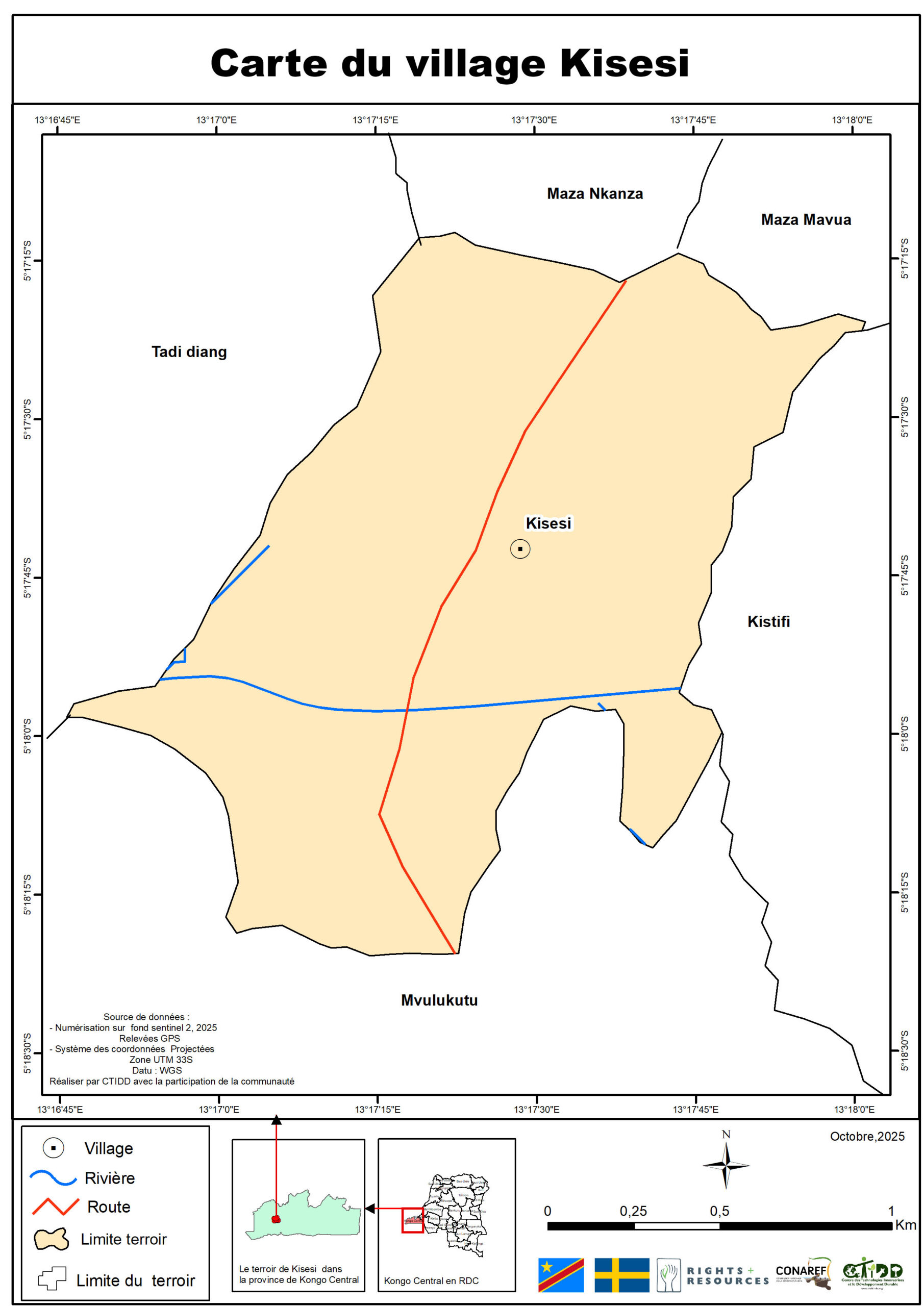 C’est dans ce cadre que le Centre des Technologies Innovatrices et le Développement Durable (CTIDD), en partenariat avec le Ministère des Affaires Foncières, la Coordination Nationale de la Réforme Foncière (CONAREF), et avec le soutien de la Right Resource Initiative (RRI) et de l’Ambassade de Suède en RDC, a mené une mission intensive de cartographie participative dans le secteur de Bundi.