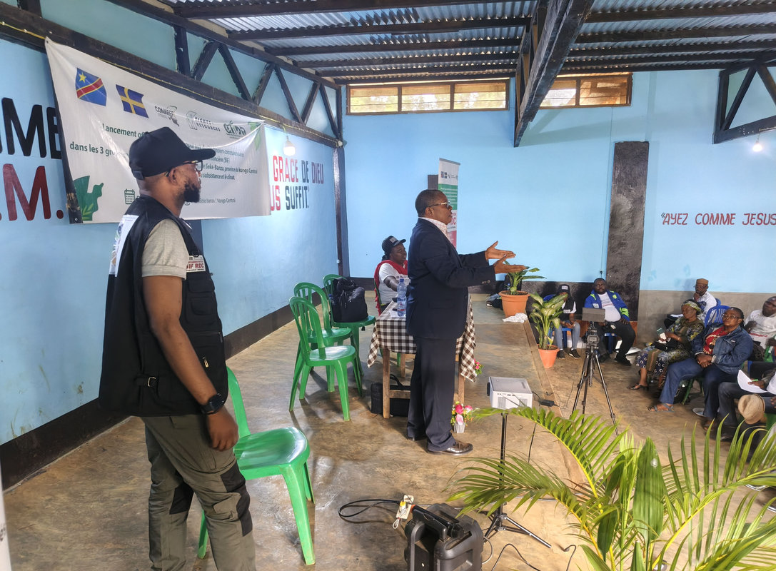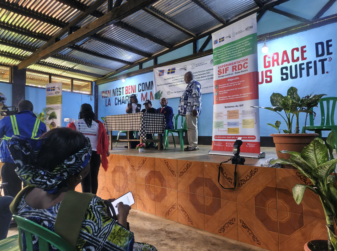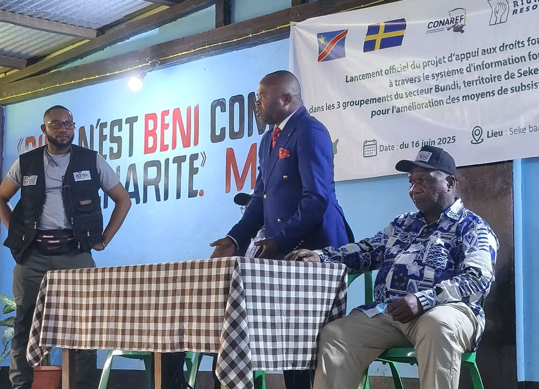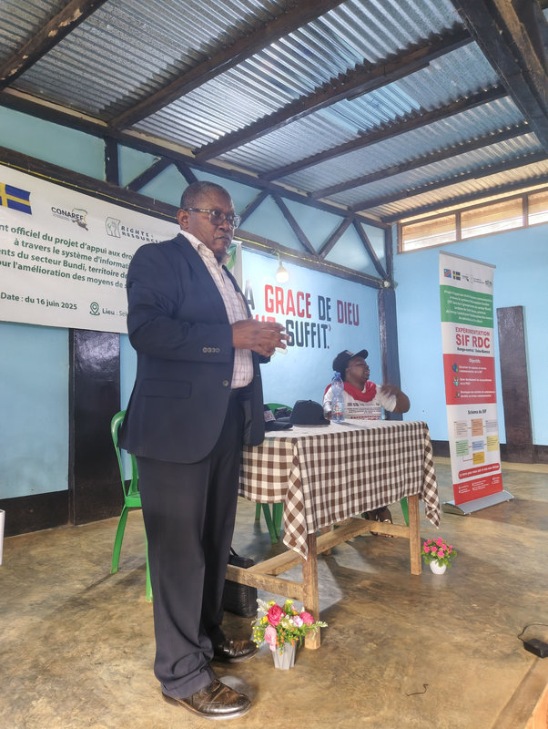 Prenant la parole, Monsieur Raphaël de la CONAREF (Commission Nationale de la Réforme Foncière) a rappelé les fondements du projet. Il a expliqué que l’initiative, portée par le CTIDD, bénéficie du soutien financier essentiel de l’Ambassade de Suède en RDC, en collaboration étroite avec la CONAREF et avec l’appui précieux de Rights and Resources Initiative, RRI (Initiative des Droits et Ressources).