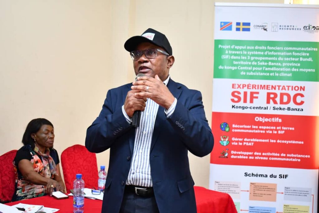 Après les cérémonies protocolaires d’usage, Monsieur Trésor Itamba, Directeur exécutif du CTIDD, a détaillé l’ambition de cette initiative pilote. Le SIF est conçu comme le mécanisme central pour octroyer des attestations d’occupation coutumière. « Nous sommes en train de réaliser un projet sur l’expérimentation du SIF, l’outil qui prévoit que nous puissions octroyer des attestations d’occupation coutumière, un document qui atteste que les communautés ont des droits coutumiers sur les terres », a-t-il expliqué.