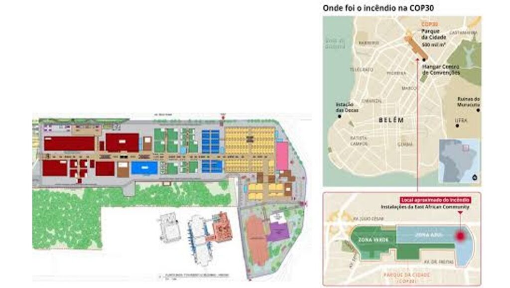 Carte du site de la COP 30 et l’endroit où l’incendie s’est déclaré